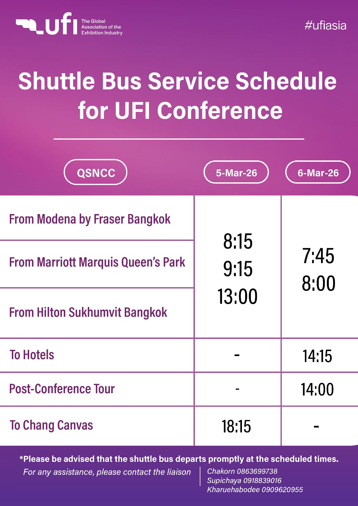 The UFI Asia-Pacific Conference registration desk operating hours: