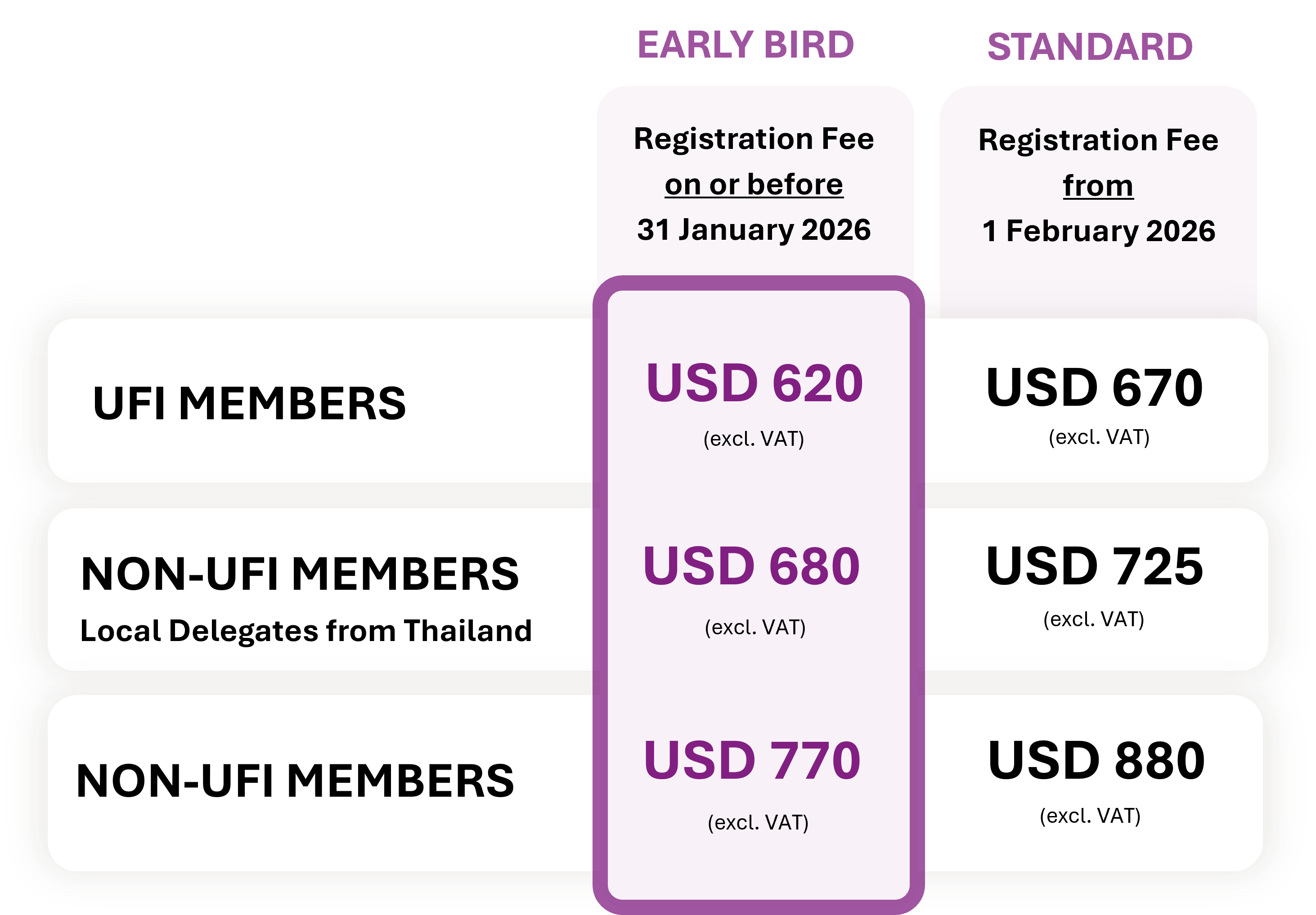 - For any cancellations as of 2 February 2026, 100% registration fee will be charged.